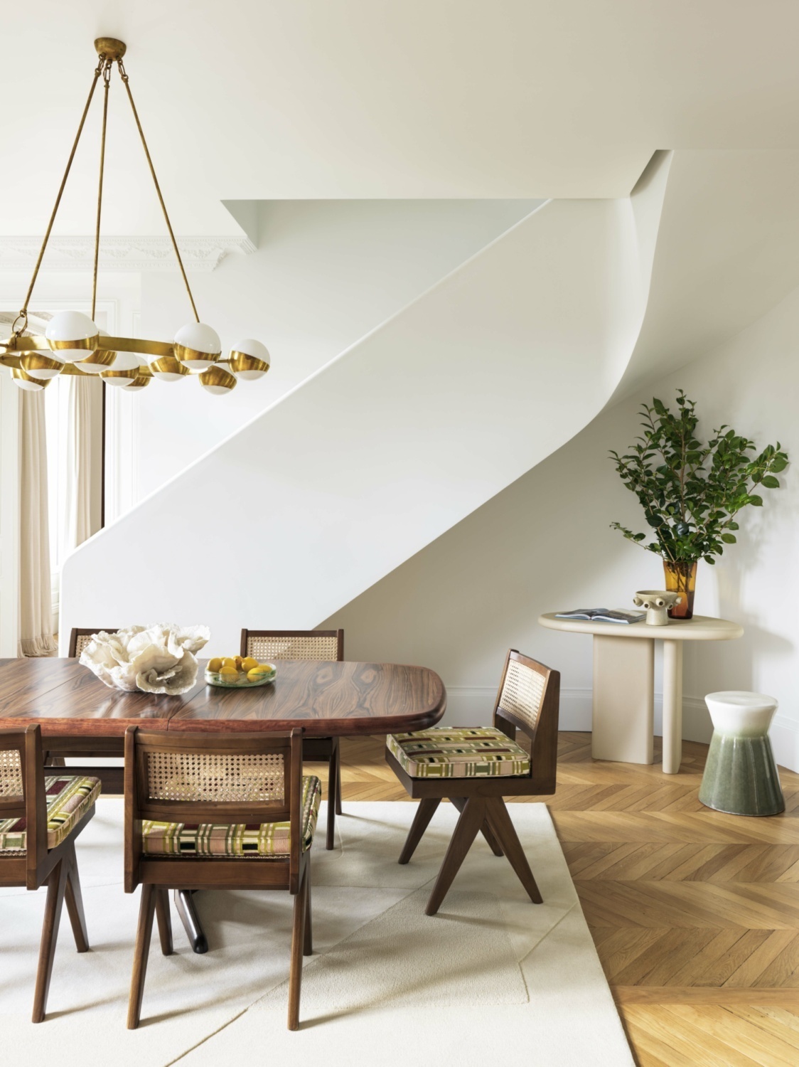 In a Parisian apartment just steps away from Parc Monceau, interior architects Stéphan Bidoux and Julien Villeneuve bring new life to Haussmann elegance with a bold celebration of colour, contrast and craftsmanship. Spanning two levels, this 170-square-meter residence reimagines classic codes through a warm, contemporary lens—where marble meets oak, and vivid tones of ochre, rose and green infuse every room with personality.